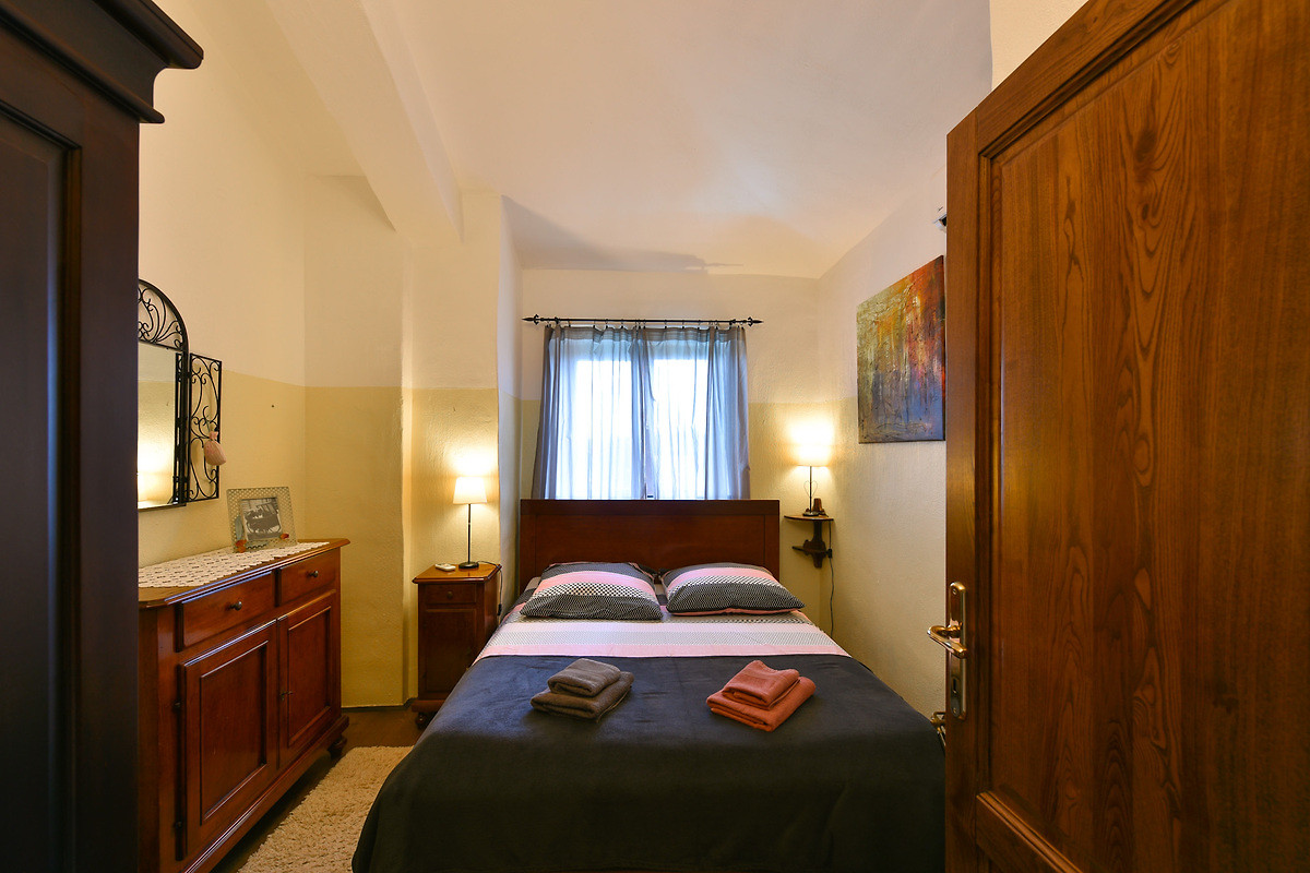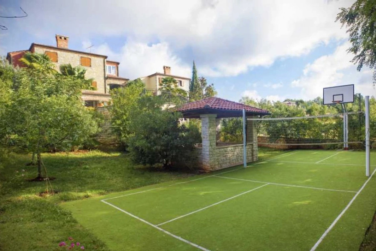Das Obergeschoss beherbergt drei komfortable Schlafzimmer mit Klimaanlage im Flur und ein weiteres Badezimmer mit Dusche, WC, Bidet, Waschbecken und Föhn. Alle Fenster sind mit Fliegengittern ausgestattet. Der besondere Clou: ein kleiner Aussichtsturm mit 360°-Panoramablick über Istrien und die Adria.