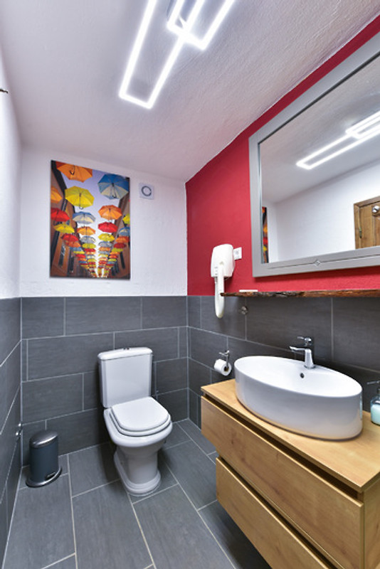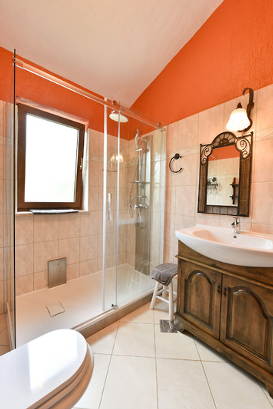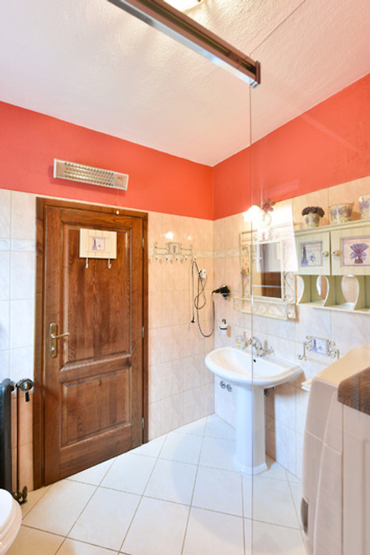 Bad im EG mit Dusche, WC, Waschbecken, Waschmaschine und Föhn. Bad im OG mit Dusche, WC, Bidet, Waschbecken und Föhn.